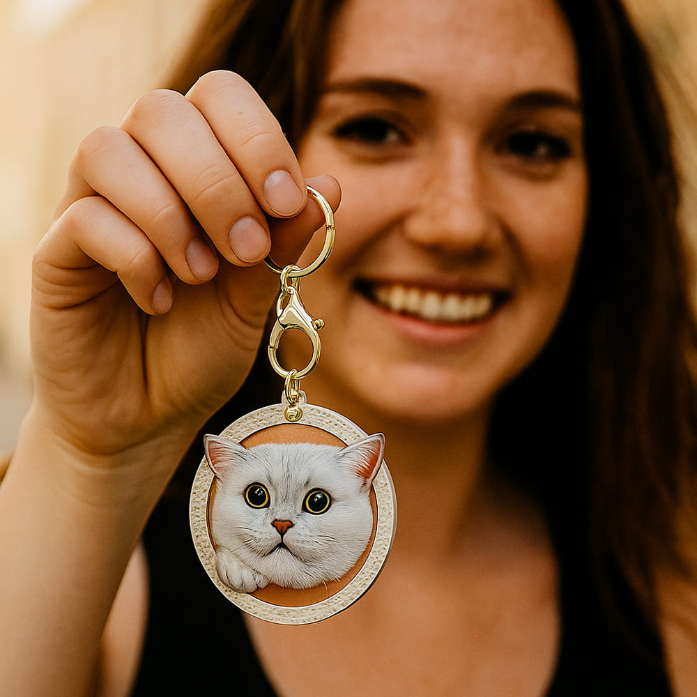 The leather of the portrait keychain is vegetable-tanned, which will become even tougher and more wear-resistant over time. We also use high-quality paints to depict your pets — the colors will never fade, and the leather will always shine, just like the deep and long-lasting connection between you and your pal.